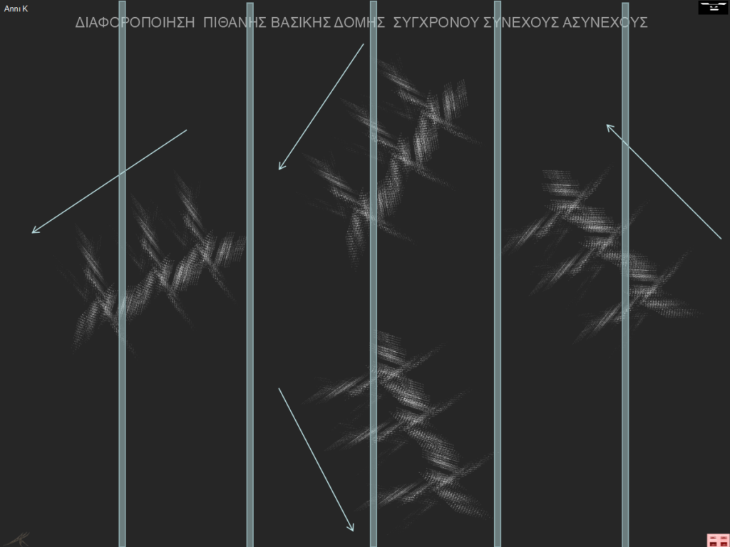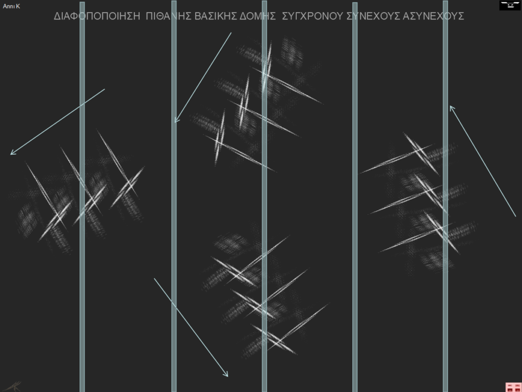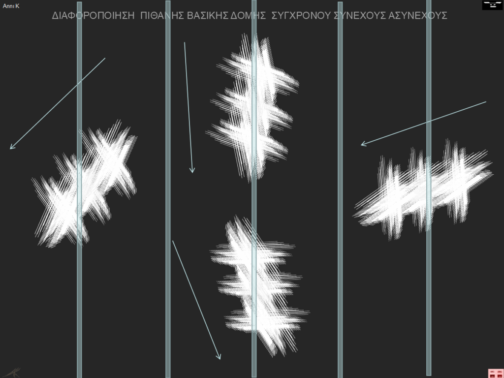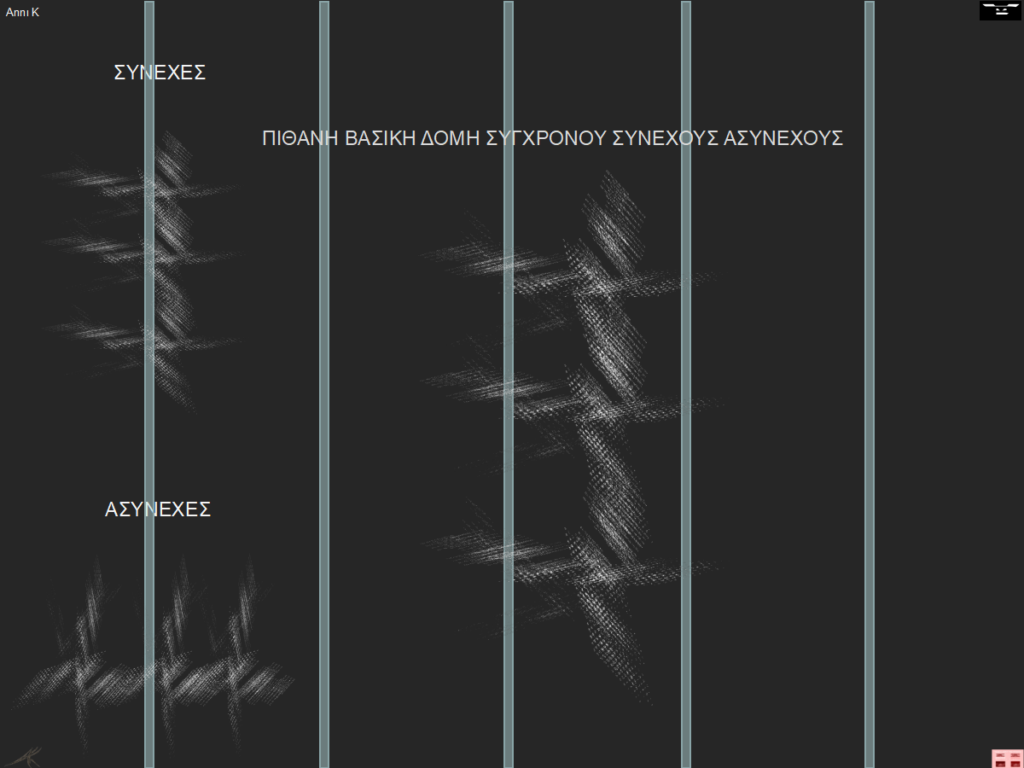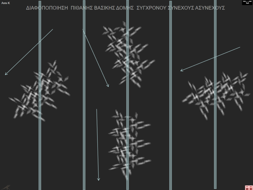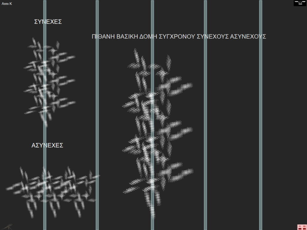 Το σύγχρονο συνεχές ασυνεχές λειτουργεί στο μορφογενητικό πεδίο και εκφράζεται με συμβολικές βασικές δομές. Οι βασικές αυτές δομές κινούνται συνεχόμενες και ασυνεχόμενες ΣΥΓΧΡΟΝΩΣ. Η εκάστοτε βασική δομή εκφράζει μια πιθανότητα συνέχειας και ασυνέχειας που συμβαίνει ταυτόχρονα.