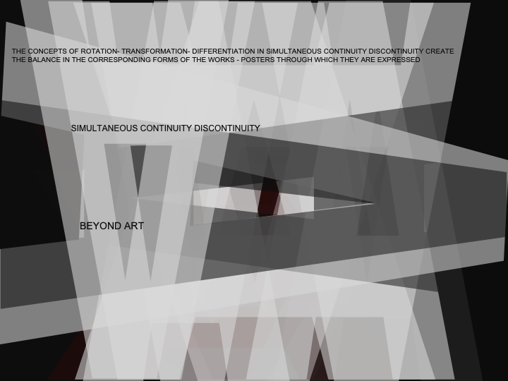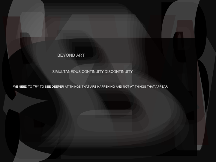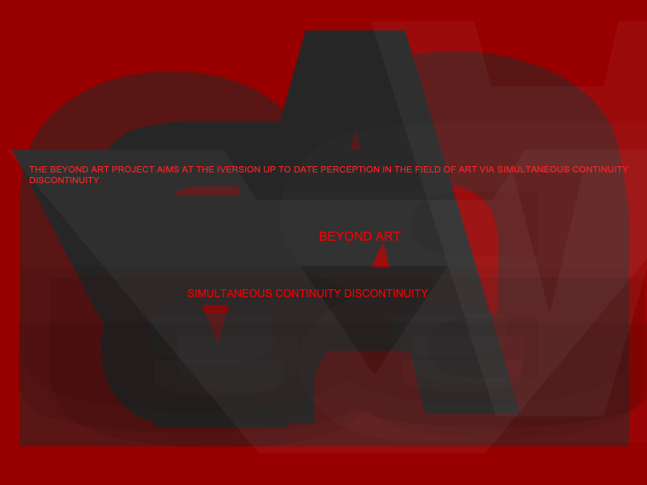 The beyond - art project seeks to overturn the up to date perception in the field of art, via simultaneous continuity discontinuity. The aim of the beyond - art research is to present simultaneous continuity discontinuity, that is a unified law of nature and it can be decoded in symbolic form-like presentations, via the binary system of continuity and discontinuity that exist in nature simultaneously.